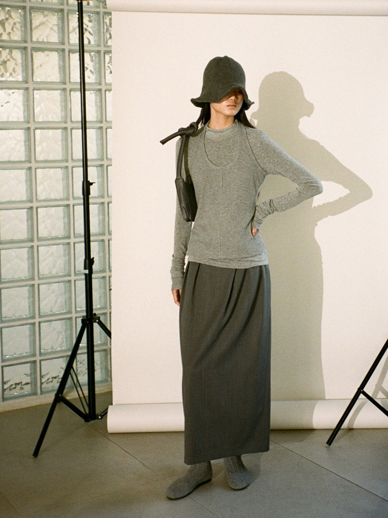 Sculptural Double-faced Wool Top with Slit Rounded Sleeves